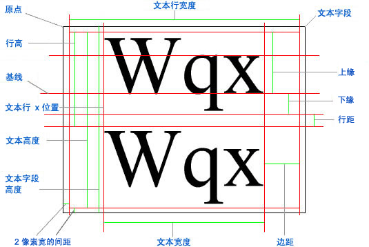 高度值是选定行中的文本的高度(并不一定是完整文本),以像素为单位。 | TextLineMetrics | ||